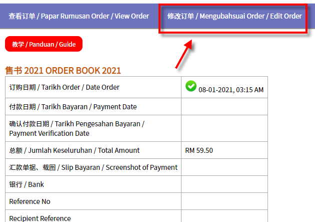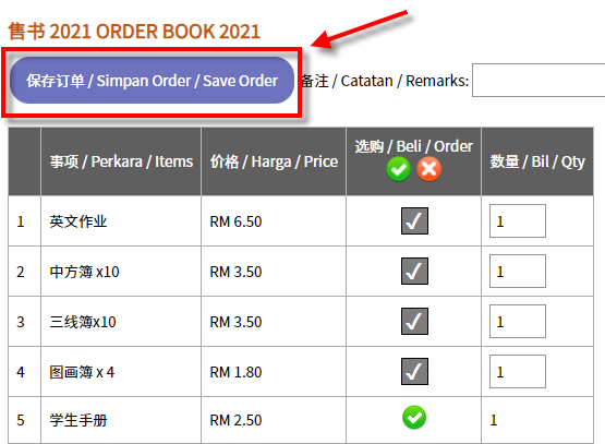 Setelah buku-buku telah dipilih, tekan butang [Simpan Order].