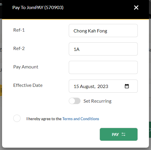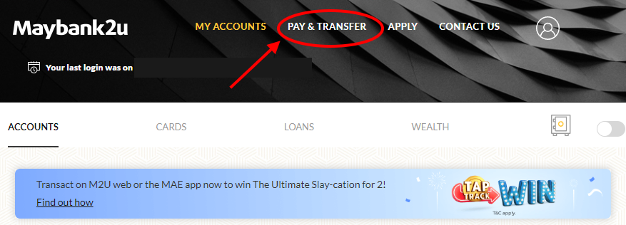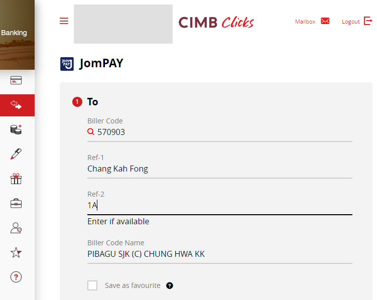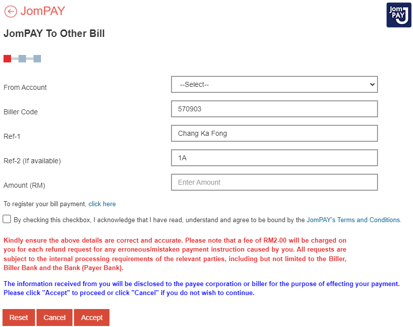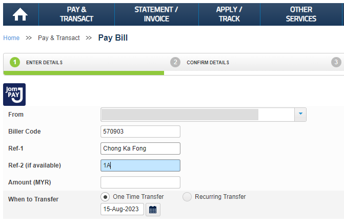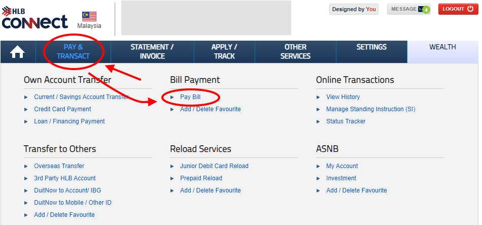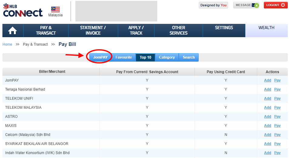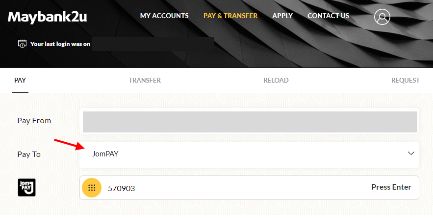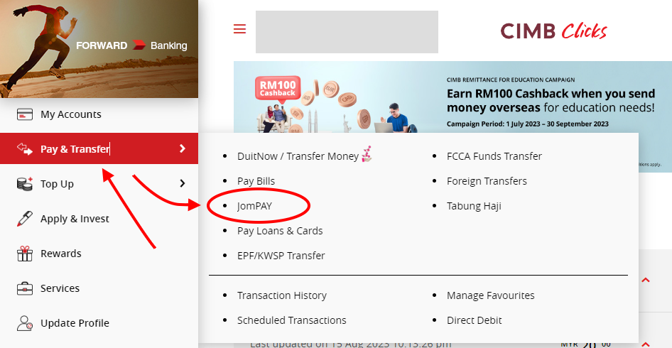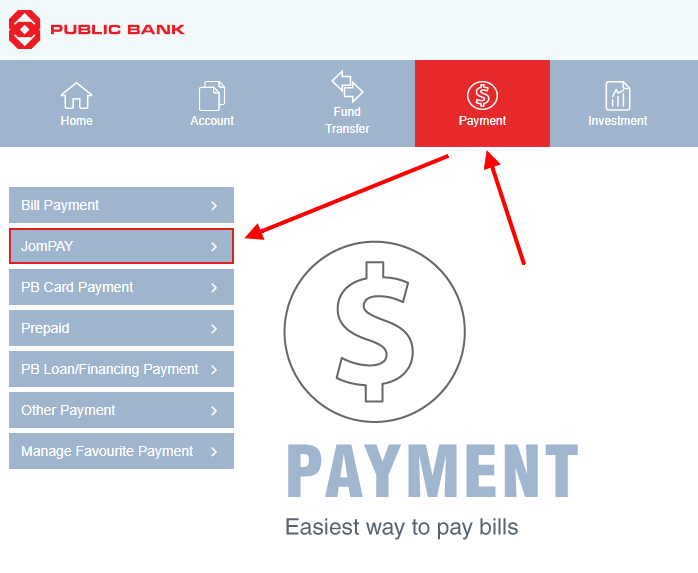 and choose bill payment > JomPAY