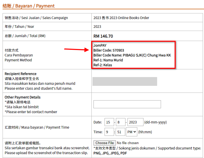 Jawab: Tidak boleh. Setiap anak dikehendaki membuat transaksi berasingan. Ini adalah untuk mengurangkan kekeliruan dan menyenangkan kerja pengesahan bayaran.